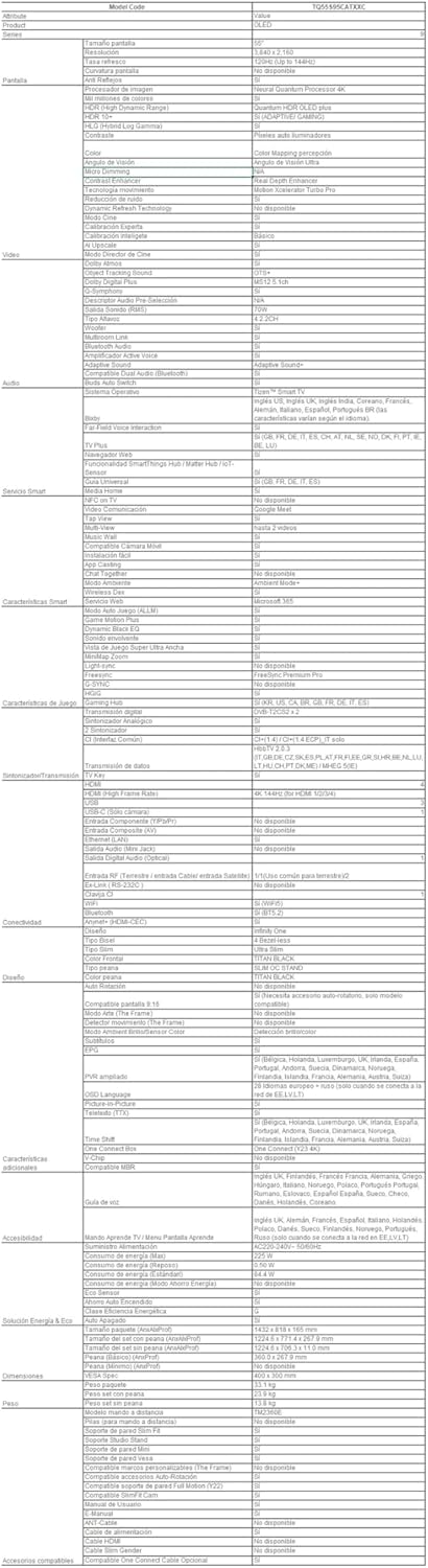 Fiche Technique SAMSUNG Téléviseur TQ55S95C 55″ (55 Pouces) OLED 4K Smart TV 2023 au Maroc