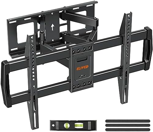 Avis sur Support mural pour téléviseur ELIVED pour la plupart des téléviseurs plats incurvés de 42 à 82 pouces, support mural pour téléviseur à mouvement complet pivotant et inclinable avec bras articulés, convient aux montants en bois de 16 pouces, Max VESA 600 x 400 mm, charge de 100 lb.