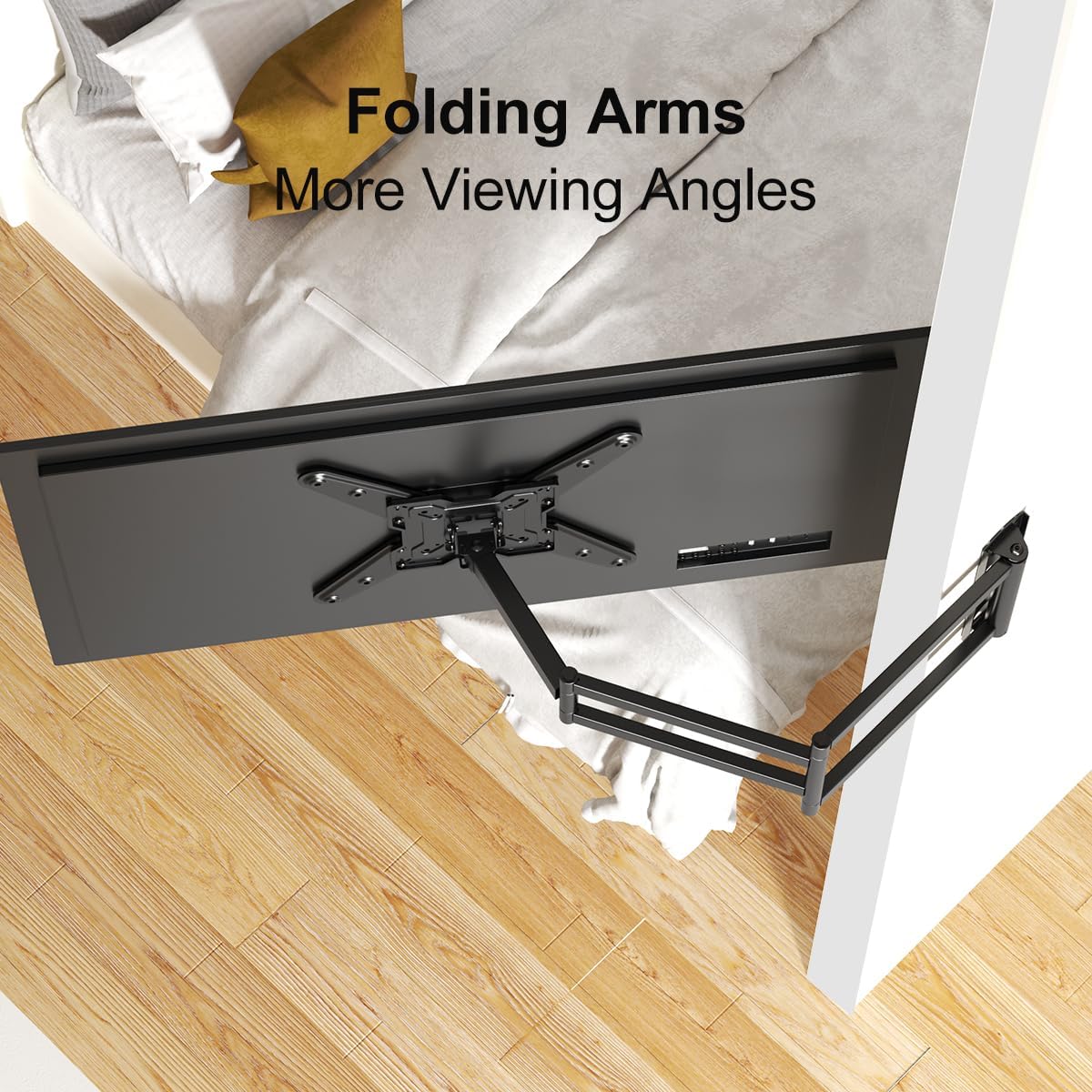 Support d’extension TV de 1020 mm de long : le support TV à bras long est équipé d’un bras d’extension extra long de 1020 mm, ce qui vous permet de tirer votre téléviseur plus loin du mur pour des positions de visualisation optimales. Ce support TV à bras long vous permet d’encastrer facilement votre téléviseur de 52 mm sur le mur lorsqu’il n’est pas utilisé, ce qui offre une solution d’économie d’espace et un aspect propre à votre espace de vie. C’est le choix parfait pour être placé dans un coin et vous donne la flexibilité de regarder la télévision de n’importe où dans la pièce.