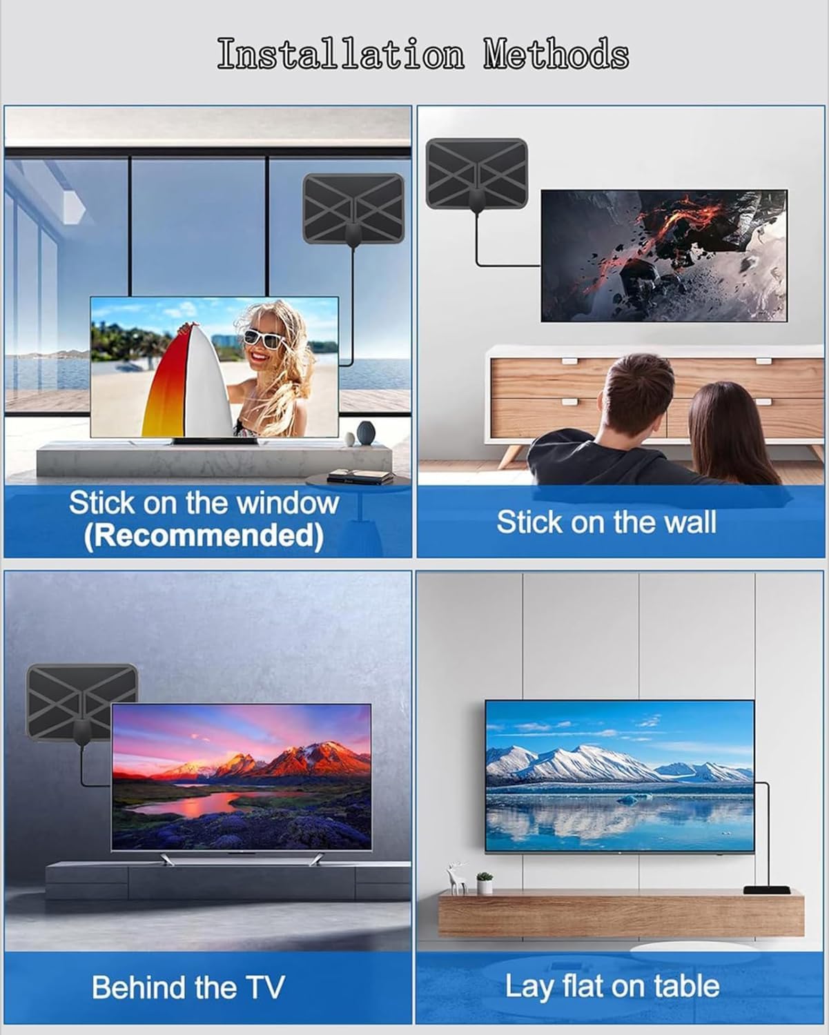 ✔【Easy to Install TV Antenna】: Place the amplifier TV antenna in a position that provides the best reception in your home, plug it into the ANT/IN connector on the back of your HDTV, scan channels by selecting Menu, then Search channel, and enjoy your free TV.