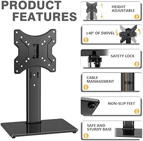 Avis sur Universal Swivel TV Stand Table Top TV Stand Base with 4 Level Height Adjustable and Swivel Mount Bracket for 20-43 Inch Plasma LCD LED TVs, VESA 200x200mm