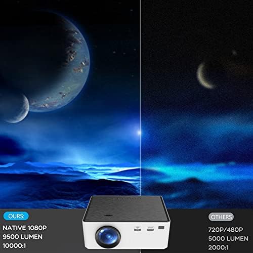 【Avec puce Bluetooth 5.1 – Haut-parleur stéréo HiFi 3 W】 Haut-parleurs stéréo HiFi puissants 5 W intégrés et système audio SRS, le projecteur Bluetooth vous offre un son immersif et répond définitivement à vos exigences de qualité sonore lorsque vous regardez des films ou écoutez de la musique. Vous pouvez également vous connecter à un haut-parleur externe ou à des écouteurs sans aucun délai. Écoutez ce que vous voulez, pas ce que vous ne voulez pas.