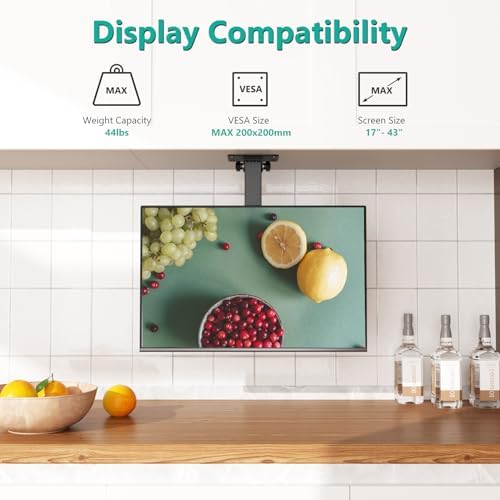 Avis sur WALI Folding Ceiling TV Mount, Swivel and Flip Down TV Bracket for 17 to 43 inch Flat Screens up to 44 Lbs, Under Cabinet Mounting Saving Space Max Mounting Holes 200x200mm(FCM202), Black