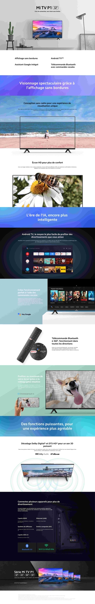 Fiche TechniqueXIAOMI Smart Android TV 32" P1 Séries -Bluetooth -Récepteur Intégré – DOLBY VISION