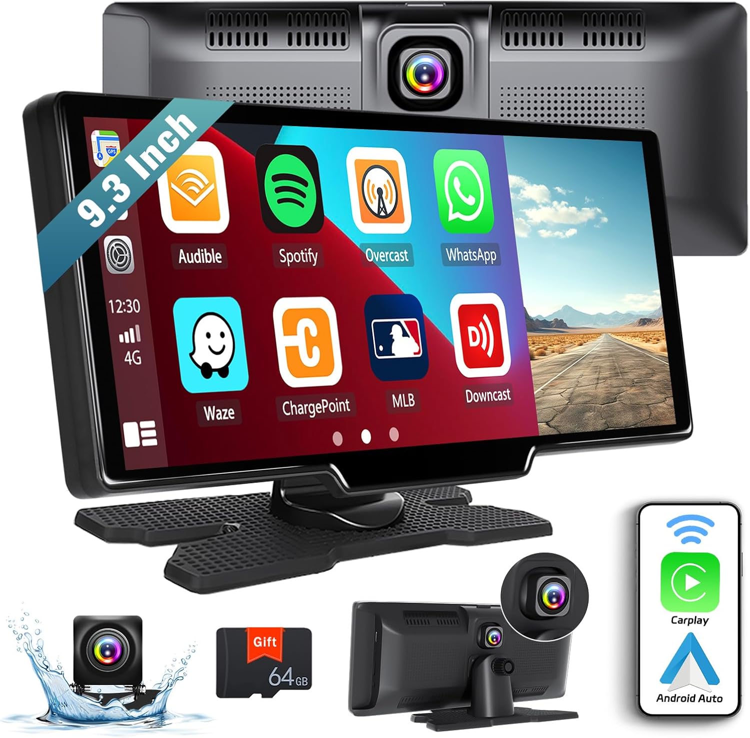 【 9.3″ Carplay Voitureavec Dashcam, Caméra de Recul】Le Carplay sans fil Android voiture commande vocale autoradio portable compatible avec 99% type de voiture de 7-32V. Les voitures et les camions peuvent tous deux être utilisés. Plug and play directement avec le tableau de bord via l’allume-cigare. Facile à installer et adapté à différentes voitures. Cadeaux pour vous : chargeur de voiture & carte TF 64G.