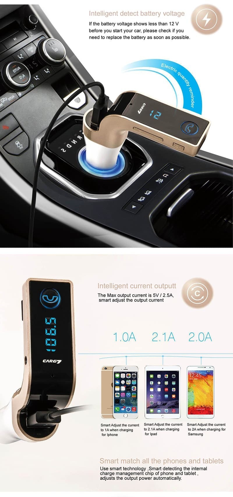 Fiche TechniqueCar Chargeur de voiture Bluetooth CAR pour téléphones mobiles-Kit voiture Bluetooth
