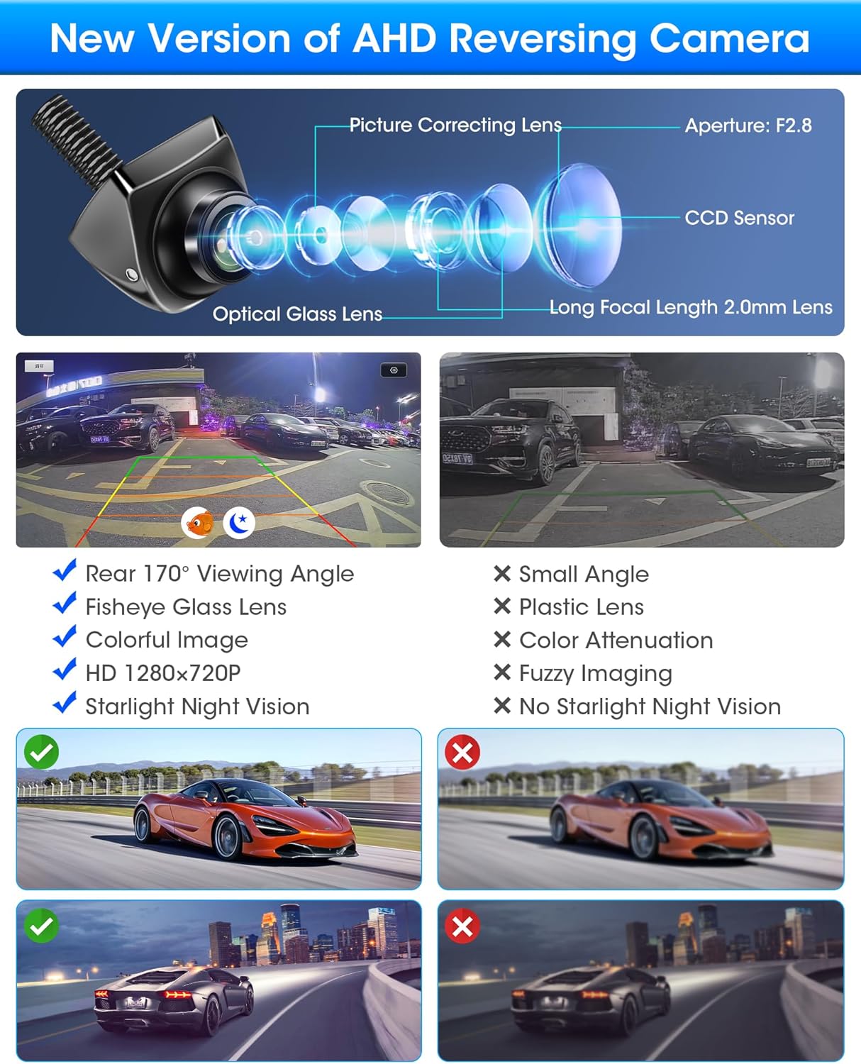 【Mini design & Haute compatibilité】La caméra de recul a un design mini avec un diamètre équivalent à 20 euros et s’adapte parfaitement à la carrosserie du véhicule, tout comme n’importe quelle partie de la voiture. Avec une entrée RCA standard, fonctionne avec votre unité principale ou des écrans LCD/TFT d’aftermarket, support 12V-24V, adapté à une variété de véhicules : voiture,camping car, mini-camion, mini-fourgonnette, etc.
