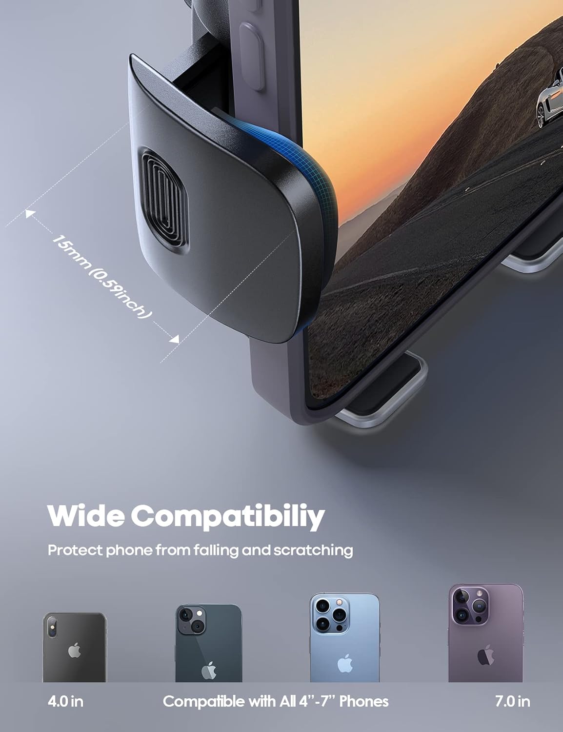 【Large Compatibilité】Ce support téléphone voiture de grille d’aération est compatible avec les appareils de 4 à 7 pouces, tels que iPhone 15 15 Plus 15 Pro 15 Pro Max 14, 14 Plus, 14 Pro, 14 Pro Max, 13, 13 pro,13 pro max,12 Mini,12 Pro Max,11 Pro,Pro Max Xs X XR 8 7 7s 6s 6 Plus, SE, Samsung Galaxy S10 + S10 S9 + S9 S8 S8 + S7 S6, Note 9 8 7 6, Huawei P30 Pro 10 Pro P20 P10, LG, HTC, Sony, Nokia, Nexus, autre smartphone. Même ces smartphones avec coque de protection.