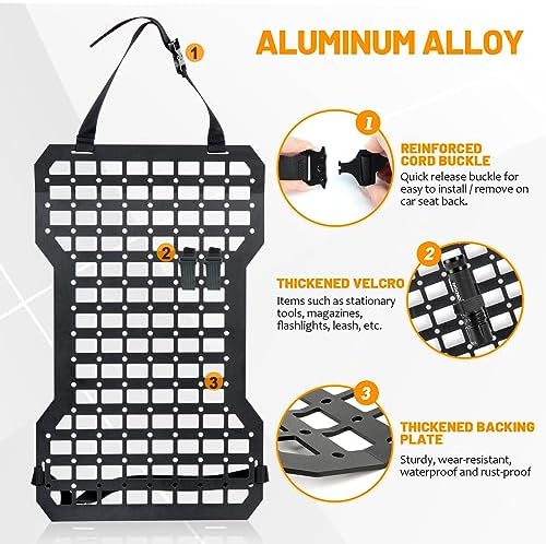★ Contenu de l’emballage : 2 panneaux arrière de siège de voiture, 10 bandes de fixation, 4 sacs Molle.