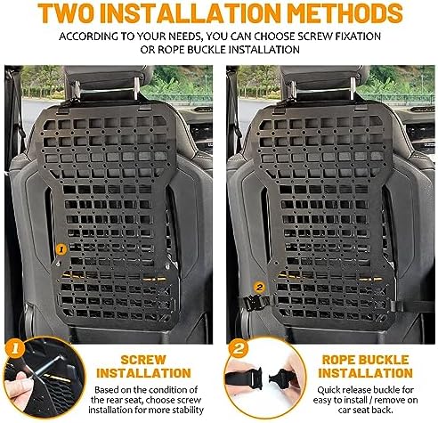 Selon la conception du dossier du siège de votre véhicule, vous pouvez utiliser des vis ou des sangles pour le fixer, dans les deux cas, cela fonctionnera pour sécuriser le panneau Molle.