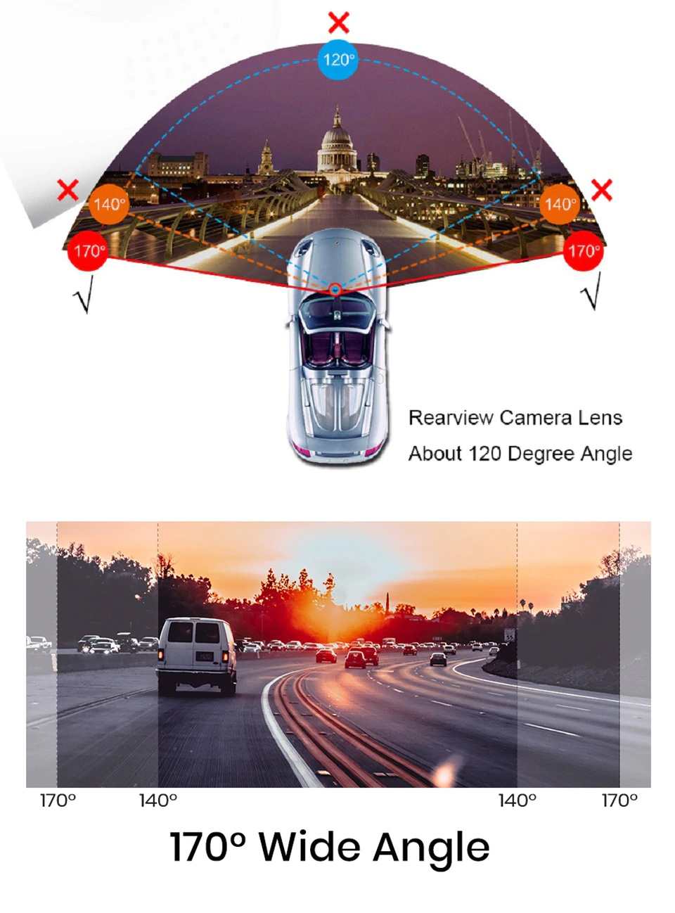 Enregistreur de données de voyage de véhicule de rétroviseur Full HD 1080P de 5 pouces, pour obtenir une vue plus claire. Double objectif, double vues, résolution vidéo : FHD 1920 x 1080, HD 1280 x 720. Mémoire de compression H. 264, objectif super grand angle, prend en charge la vidéo en même temps. Un design unique et intime combinant une caméra frontale grand angle à 170 degrés et une caméra arrière IR. Adoptez la technologie dynamique à l’échelle du WDR pour améliorer l’effet de vision nocturne, voyant ainsi la plaque d’immatriculation aussi clairement que possible. Détecte et démarre automatiquement la vidéo au démarrage du véhicule et prend en charge l’enregistrement vidéo pendant la charge.25 images par seconde pour un flux vidéo fluide. Prend en charge la carte mémoire TF, jusqu’à 32 Go (non incluse). Prend en charge la détection de cycle de boucle et la fonction de détection de mouvement. Capteurs de collision intégrés (capteur G), en cas de collision grave avec un véhicule, l’enregistreur verrouille la vidéo. Avoir une fonction de verrouillage des touches peut verrouiller le fichier que vous souhaitez enregistrer et non couvert par le cycle.