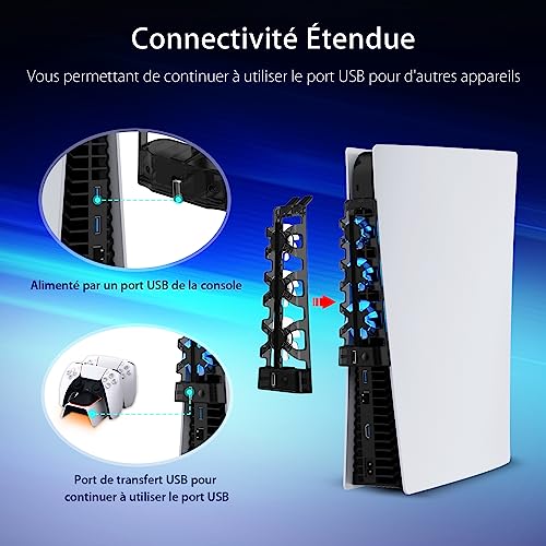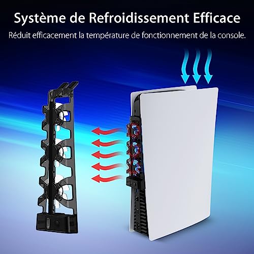 Le Prix NexiGo PS5 Ventilateur de Refroidissement avec Del, pour Les éditions disques et digitales, Système de Refroidissement Efficace, Facile à Installer, Vitesse des Ventilateurs réglable et Port USB au Maroc
