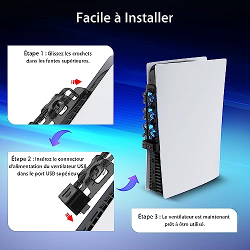 Avis sur NexiGo PS5 Ventilateur de Refroidissement avec Del, pour Les éditions disques et digitales, Système de Refroidissement Efficace, Facile à Installer, Vitesse des Ventilateurs réglable et Port USB
