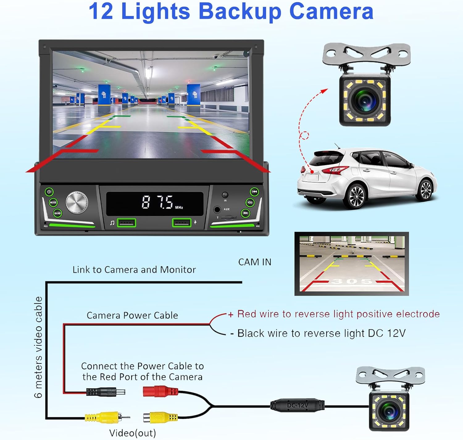 【Plus de Fonctions】- Lien de mise en miroir de téléphone IOS/Android, prise en charge de la carte SD, lecture USB et lecture de musique AUX et lecture Bluetooth, changement de langue, entrée adaptateur double USB2.0, lecture audio et vidéo, réglage de l’heure, thèmes d’interface, commutation d’arrière-plan, etc.