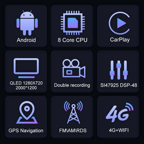 Système d’exploitation Android 11 + Carplay + Android AUTO +Double camera record+ carte hors ligne + lien miroir + fonction GPS + accès Internet wifi + FM + fonction de sortie et d’entrée vidéo + apprentissage du bouton de commande au volant + microphone intégré + musique mobile BT