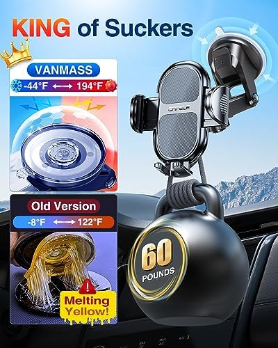 [Stable and Safe Car Phone Holder] Ventouses et adhérence super fortes de qualité militaire, avec trois couches d’adhésif puissant, de sorte que le support soit fermement collé au tableau de bord ou au pare-brise de la voiture, et afin de protéger le tableau de bord, est livré avec une ventouse pour éviter d’endommager le tableau de bord et bouches d’aération lors du basculement entre le tableau de bord et le tableau de bord par débranchage répété