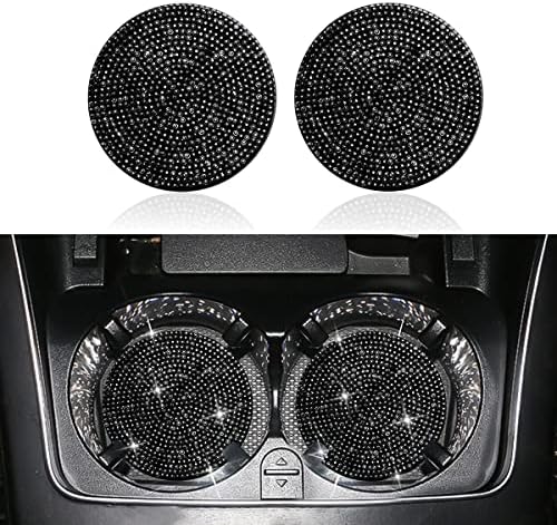Voici le prix pour acheter Ziciner Lot de 2 dessous de verre antidérapants pour voiture avec bouton de démarrage et d’arrêt, accessoires universels d’intérieur de véhicule en cristal brillant pour femmes et filles (noir)