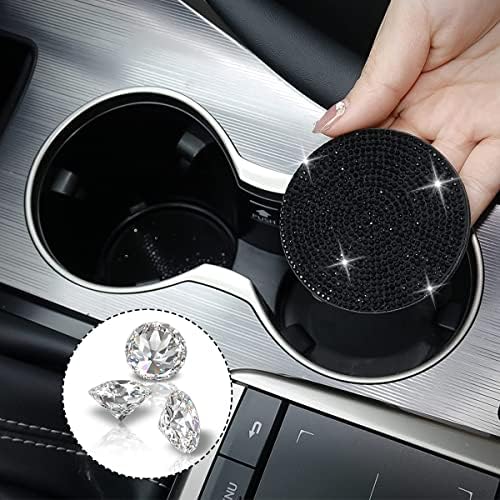 Le Prix Ziciner Lot de 2 dessous de verre antidérapants pour voiture avec bouton de démarrage et d’arrêt, accessoires universels d’intérieur de véhicule en cristal brillant pour femmes et filles (noir)
